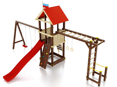 Для максимальной защиты ребёнка от травм, все углы имеют закруглённую форму, крепеж надежно скрыт пластиковыми заглушками. Опоры изготовлены из клееного бруса толщиной 90*90 мм.