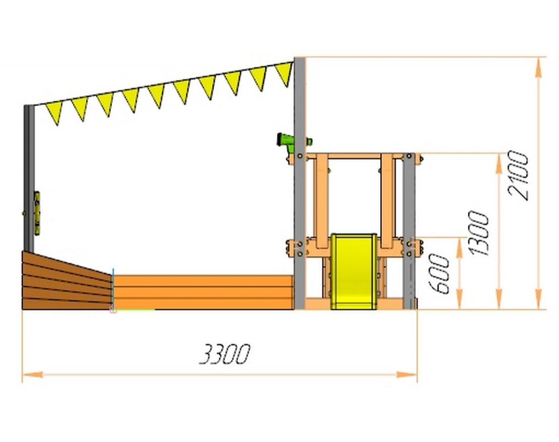 Габариты комплекса: 3300 мм х 1500 мм х 2100 мм.