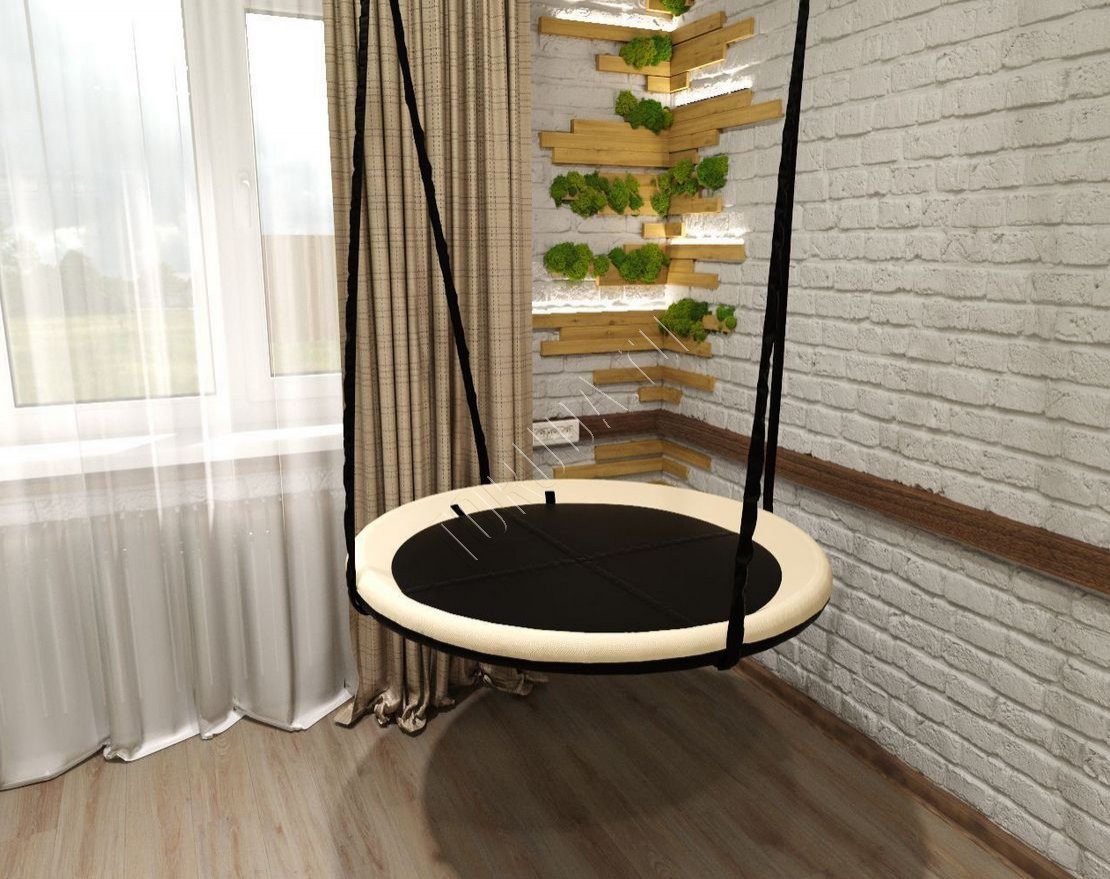 Эти качели идеально подходят как для размещения на улице, так и в помещениях. Обратная сторона полностью чёрного цвета придаёт им стильный и современный вид. Наслаждайтесь отдыхом с комфортом и безопасностью, выбирая качественные и долговечные качели для всей семьи!