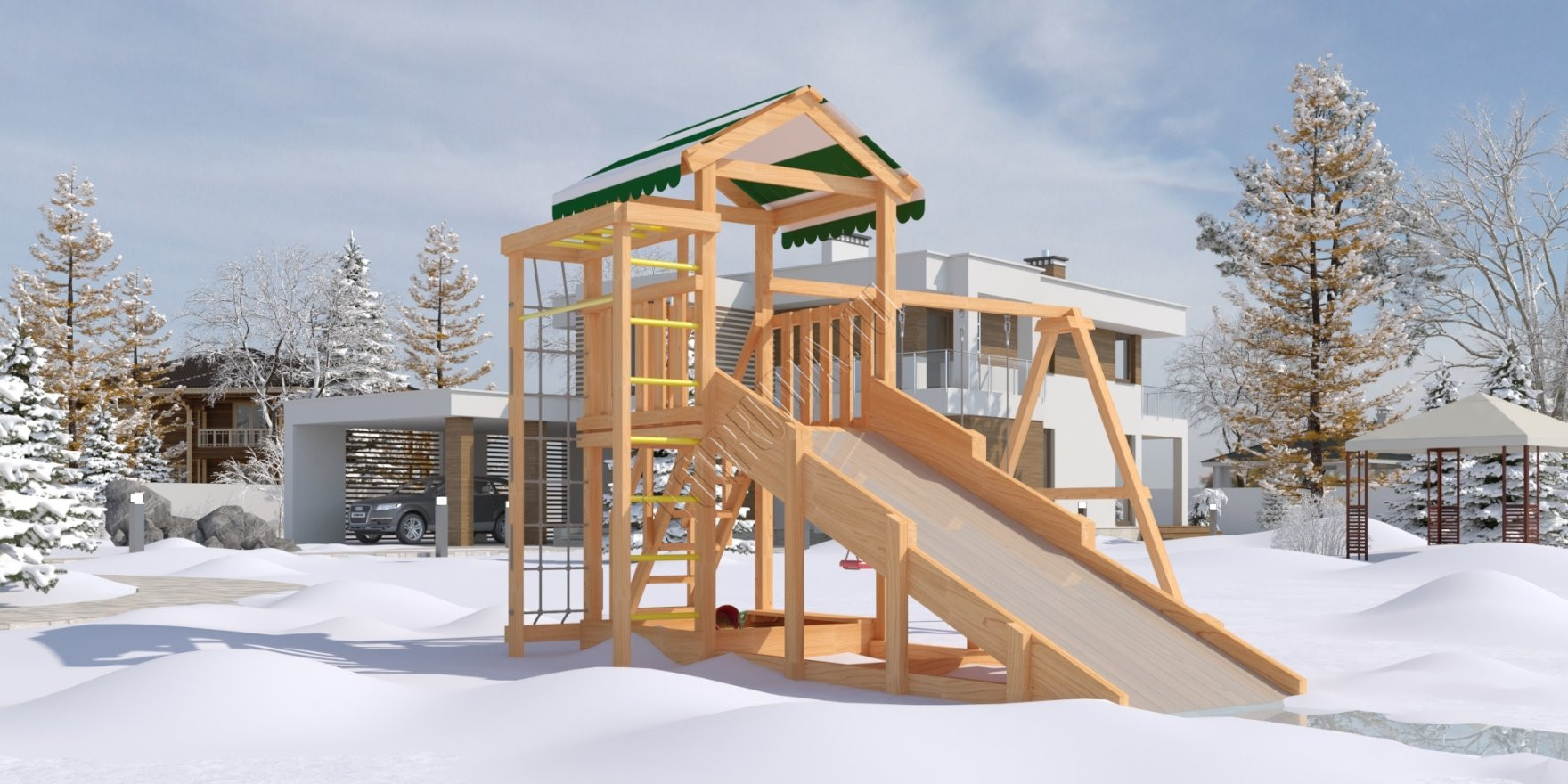 Конструкция, качество дерева и качельные подвесы соответствуют ГОСТ. Основной материал натуральный – это экологичный клееный брус, он гладкий на ощупь, его углы скруглены во избежание получения ссадин. Площадка полностью безопасна: все крепежи и болты плотно закрыты заглушками, а спортивное оборудование используется от проверенного сертифицированного бельгийского производителя.