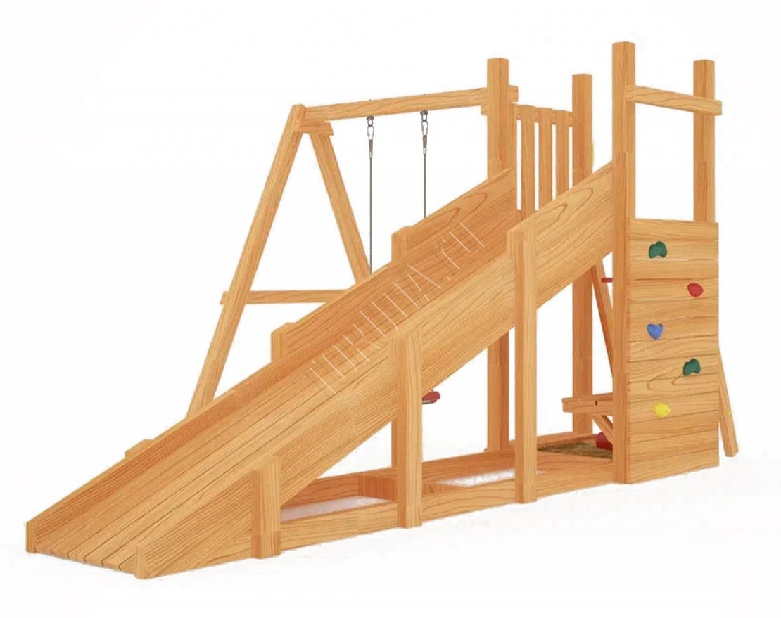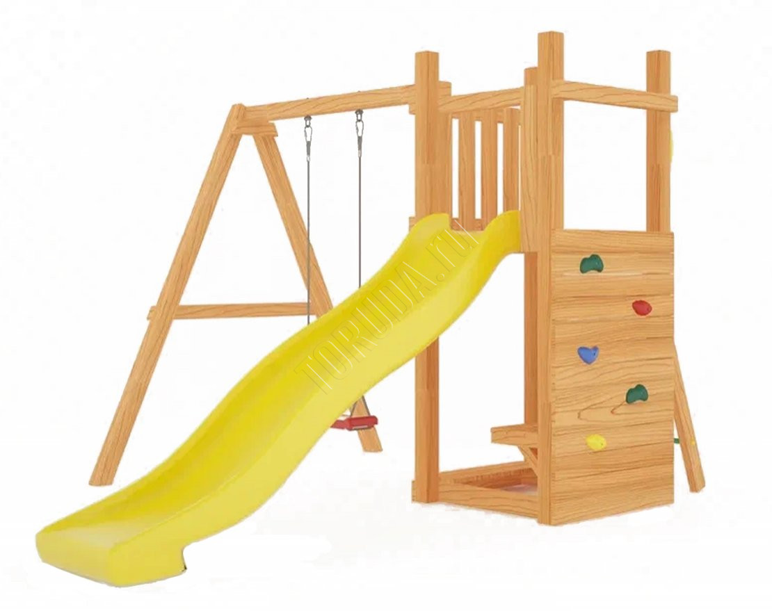 Площадка с качелями (всесезонная) наполнит досуг детей энергией и радостью. Она компактная и займёт всего лишь несколько квадратных метров участка дачного или загородного дома. Покрытие с антисептиком защитит натуральные составляющие от непогоды (наносится самостоятельно).