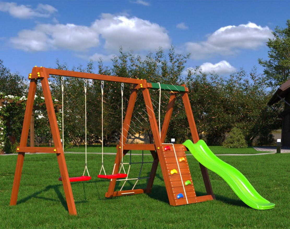 Площадка Борге 1 обладает довольно широким функционалом (который по желанию можно легко расширить). Детская площадка предназначена для дачи, коттеджа.