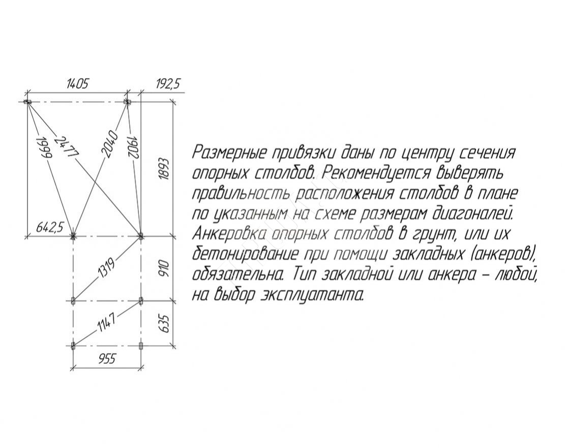 Для установки данной площадки рекомендуется закрепить её анкерами (4 шт). Анкера в комплект не входят, приобретаются дополнительно.