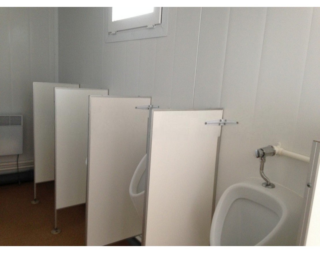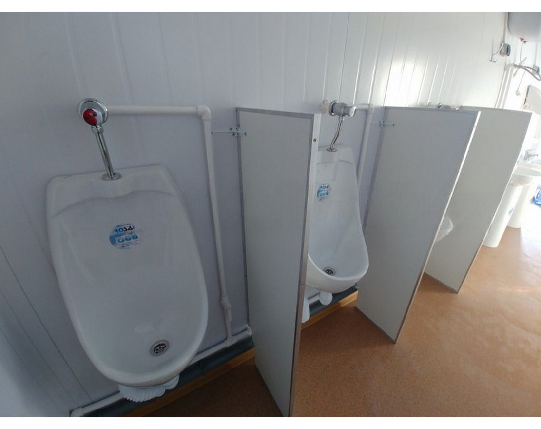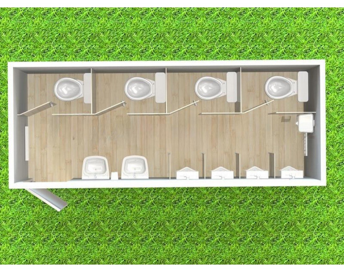 Перед вами модель. Это павильон, предназначенный для использования мужской частью населения. Он разделен на несколько отделений с унитазами, писсуарами и раковинами. Комплектация определяется заказчиком, при желании унитазы могут быть заменены на Чаши Генуя.