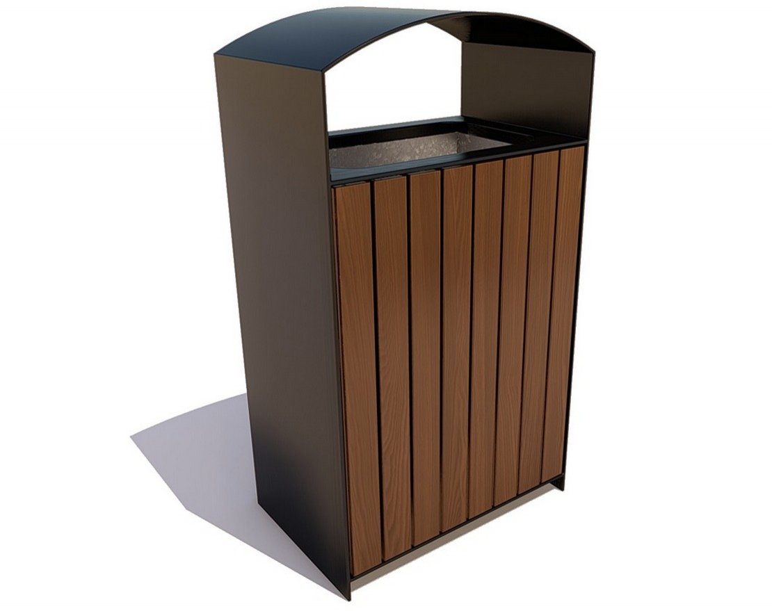 Урна «Базис» имеет вместимость 40 л. Она сделана из стали и обработана антикоррозийным составом. Окрашено изделие с помощью термореактивного напыления, которое остаётся безупречным под воздействием любых осадков. Верхний козырёк защищает внутренний бак от проникновения влаги. Контейнер напоминает стильную тумбу, он украшен планками из ангарской сосны/лиственницы. Такие изделия хорошо смотрятся на загородном участке, в парке, у любого здания.