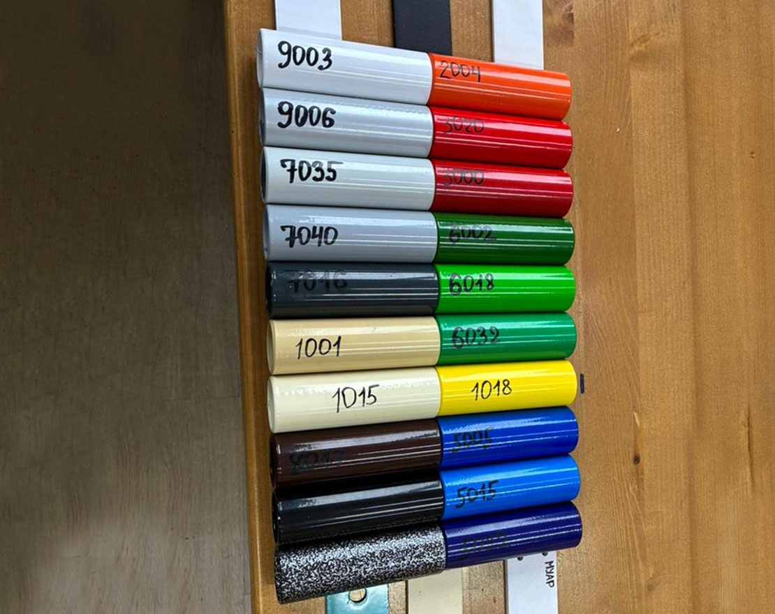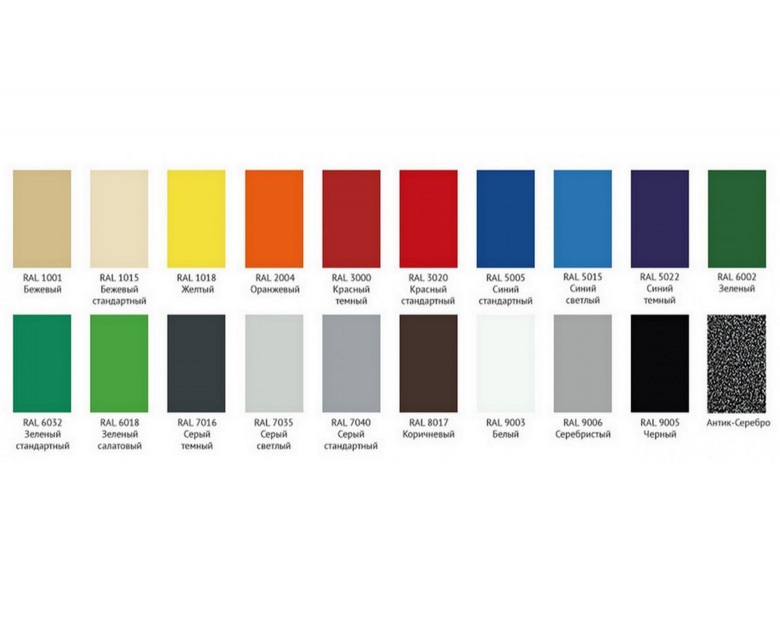 - Тип окраски: Полимерно-порошковое покрытие, цвет стального каркаса по таблице RAL