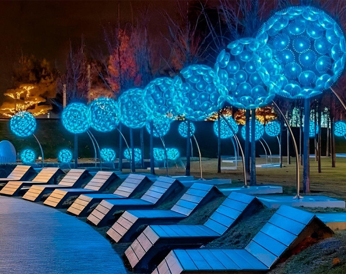 Функциональное и декоративное освещение парков, скверов, коттеджных поселков, прилегающих территорий зданий.